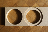 Die Aufnahme für den Breitbänder wäre somit theoretisch 6mm, daher ist die Platte entsprechend bearbeitet.