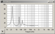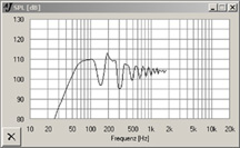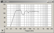 Es ist deutlich zu sehen, dass eine nennenswerte Schallabgabe unterhalb 60 Hz nicht vorhanden ist. Hinzu kommt die zugegebenermaßen leichte Überhöhung im oberen Bassbereich.