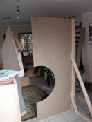 Die vorbereiteten Schallwandteile haben wir im Raum auf das Gerüst geschraubt, zusammengesteckt und miteinander verschraubt.