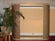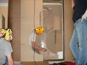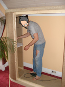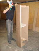 Um die Front- und Rückwand einbauen zu können, mußten wir die fertig gestellten Teile zusammenfügen. Anschließend bauten wir noch je einen Rahmen für die einzusetzende Front- und Rückwand. Parallel dazu haben wir die gesamten Fugen in den Seitenteilen mit Acryl abgedichtet. |