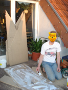 Dazu schnitten wir diagonal die Platten auseinander und legten die Reststücke dazwischen.