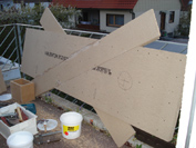 Um genügend Stabilität zu bekommen haben wir uns für je drei 22mm Rohspanplatten entschieden.