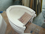 Im Bild 08 kann man die Anschläge für die späteren Gehäusewände des Breitbänders gut erkennen.