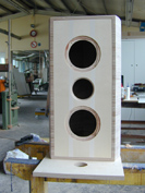 Diese dient zuim einen als Aufnahme der Tieftöner, zum anderen wird aber auch der Blechkorb des Breitbänders verdeckt.