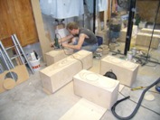 Nachdem die Fronten fertig geschliffen und auf die Fronten geklebt waren konnten wir die Treiberausschnitte und FL-Horn Ausschnitte einfräseen.