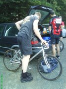 1) das Bike Mitte der 90er Jahre habe ich mit Triathlon angefangen. Doch recht schnell bin ich durch gute Freunde auf das Mountainbike gestoßen. Im Laufe der nächsten Jahre habe ich mir mein Mountainbike nach meinen Vorstellungen aufgebaut. Die Marzocchi Bomber Z2 Federgabel, XT V-Brakes und ähnliches mussten irgendwann dem Leichtbau weichen. So konnte ich das Gewicht, mit 1" Reifen, auf knapp unter 8,0kg herunter schrauben.  |