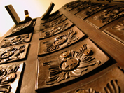 Der Safe ist aus massiven Holz gefertigt und hat 42 separat abschließbare Fächer.